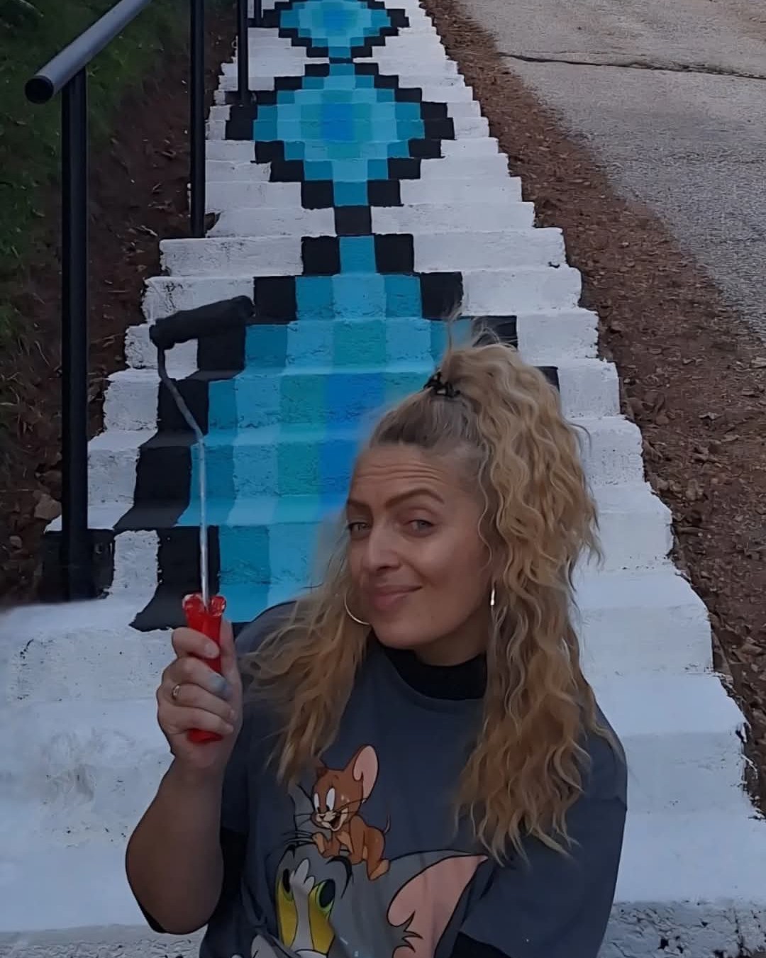 Аутор мурала је Слађана Клачар, а замисао је да степенице буду обојене по узору на мотиве традиционалне српске ношње.