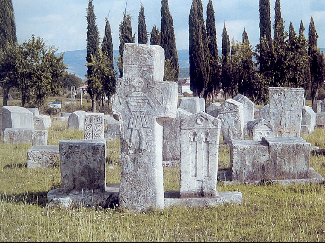 Ukupno postoje 133 spomenika, od kojih je najveći broj klesan u obliku sanduka i sljemenjaka. Od toga su 63 ukrašena primerka. Među raznovrsnim reljefnim motivima, najbrojnije su povijene lozice sa trolistovima, tordirane vrpce, štitovi sa mačevima, krstovi, razne ljudske i životinjske figure, scene lova, kola i turnira. Osim ovih, sreću se i motivi arkada, spiralno povijene loze sa grozdovima i neki drugi. Pojedinačne muške figure imaju podignutu ruku sa relativno velikom šakom i prstima. Misli se da su to „vojvodske figure“.
