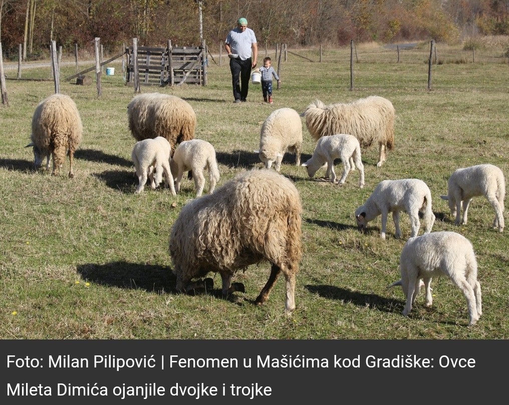 Tako tvrde veterinari, međutim ova logika ne važi za Mileta Dimića iz Mašića i njegovo stado. Sve njegove ovce jesenas su ojanjile dvojke. Tako je bilo i prošle godine. Bilo je i trojki. Po tome se Mile pročuo u cijelom Potkozarju. Mnogi ne vjeruju, pa navraćaju, da vide, porazgovaraju i uvjere se u priču koju su čuli, a nisu vjerovali. Kod ovog domaćina, porijeklom iz Jelašinovaca kod Sanskog Mosta, rijetkost je jedno jagnje.