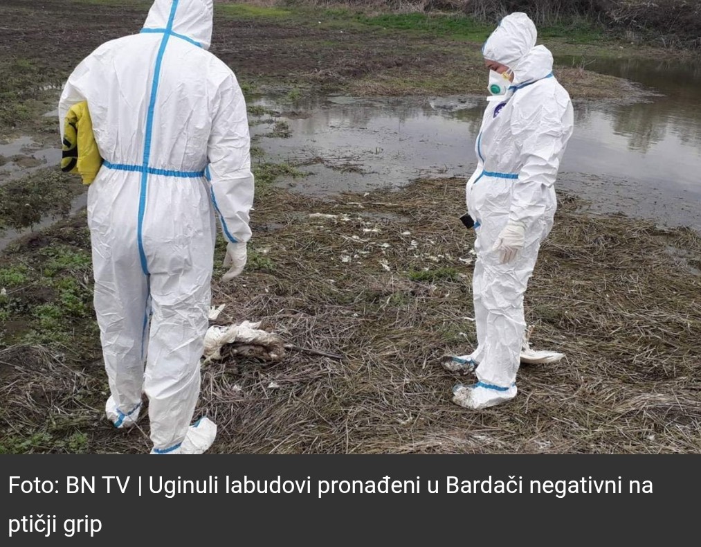 Bilanović je naveo da je Veterinarski institut “Vaso Butozan” ustanovio da su dva labuda koja su u petak pronađena uginula na području Bardače negativna na ptičji grip i da će narednih dana biti poznat tačan uzrok.