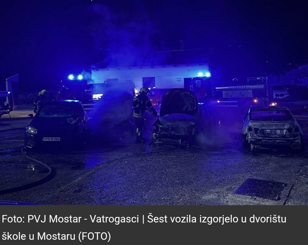 Iz MUP-a Hercegovačko-neretvanskog kantona potvrdili su za Avaz da je jutros u 3.10 sati Policijska uprava Mostar zaprimila prijavu da je na adresi Konak, u krugu školskog dvorišta, izbio požar na više vozila.