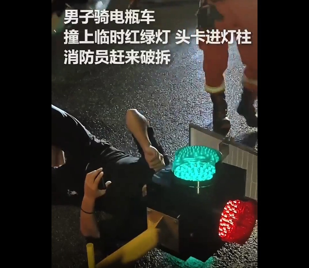 Jedan Kinez je postao viralan jer mu se glava zaglavila u semaforu! Nesrećni Kinez je proveo skoro sat vremena sa glavom zaglavljenom u semaforu nakon što je u njega udario električnim trotinetom.
